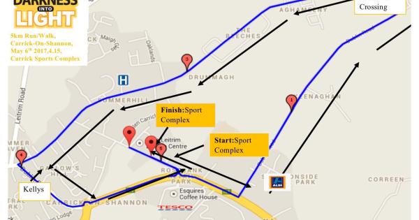 DIL Carrick-on-Shannon takes in a flat lit up route for the first 2.5K, heading out the Castlecara Road while the second half gives us an uphill walk via Summerhill, continuing around by Kelly’s Foodstore and returning via the Tesco roundabout. Start and finish at Sports Complex beside Aura.