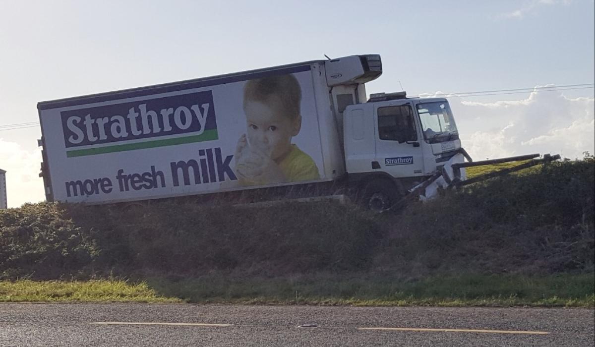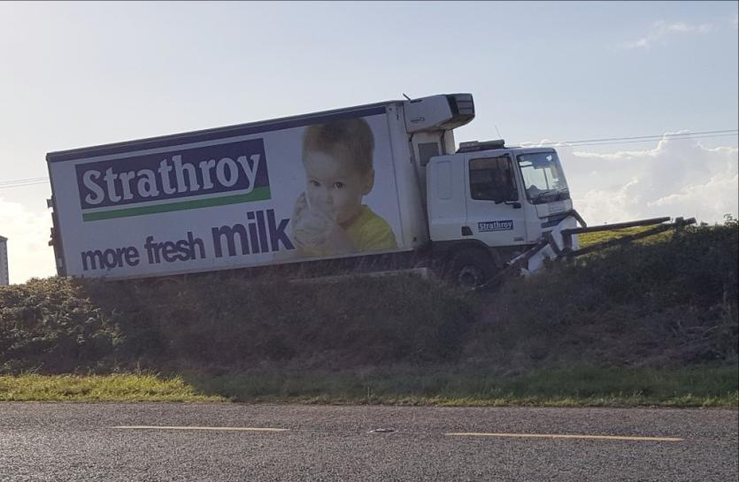 A Strathroy milk truck left the main Tullaghan to Bundoran road yesterday evening, Monday, August 7.
