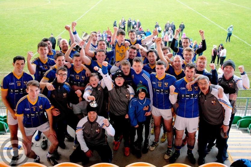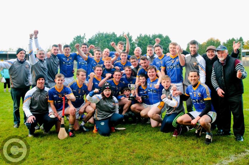 Cluainin Iomaint players celebrate their victory in the Senior Hurling Championship. Photo by James Molloy