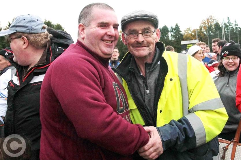 Peter Galvin, brother of the late Cluainín Iomáint manager Mick Galvin with selector Eugene Clancy. Yesterday's victory was a poignant moment for Peter, who took over management of the team last year after his late, much lamented brother's death.