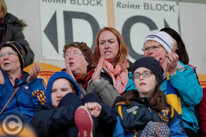 Jade and Fionnuala McLoughlin cheer on Cluainin. Photo by James Molloy