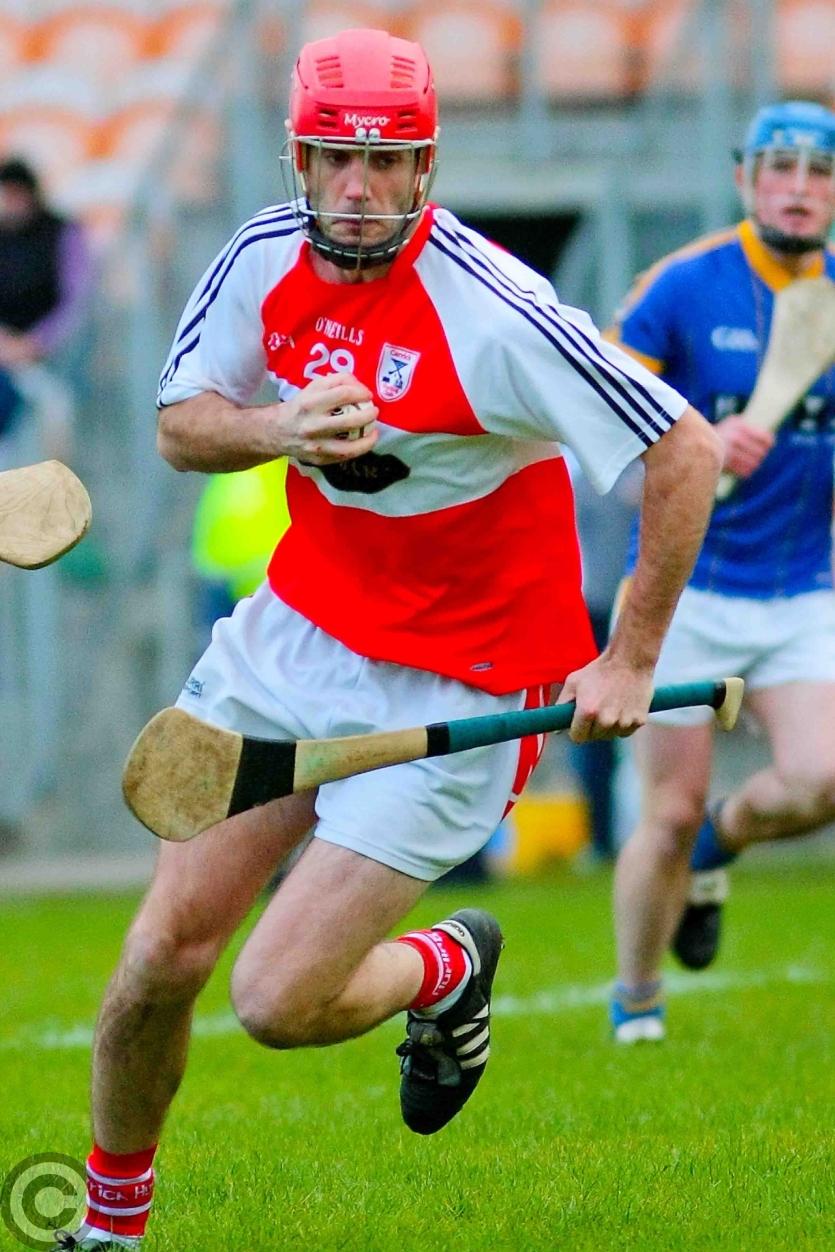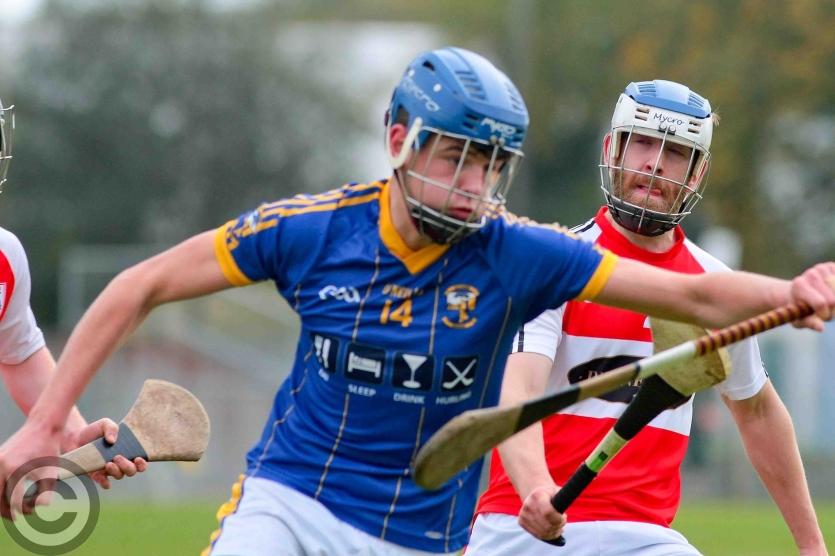 James Rooney has eyes only for the sliothar. Photo by James Molloy