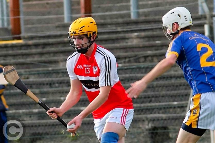 James Glancy evades Cluainin's David Poniard. Photo by James Molloy