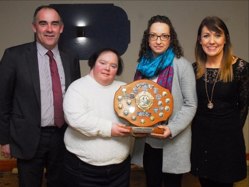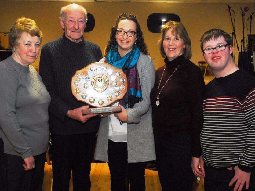 Eilis McGourty from Glenfarne accepted the Cormac MacGiolla Shield for Club na Bliana on behalf of Assumpta Clancy (cultural officer Glenfarne). It was proudly presented to Eilis by Ailbhe McGill, Bornacoola.