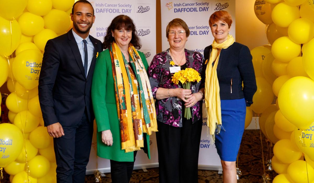 Irish Cancer Society Daffodil Day fundraisers Mary Reynolds and Chris Kelly are pictured alongside CEO of the Irish Cancer Society, Averil Power and presenter Kamal Ibrahim at the launch of the Irish Cancer Society’s Daffodil Day in partnership with Boots Ireland in the City West Hotel, Dublin on Friday, February 7th.