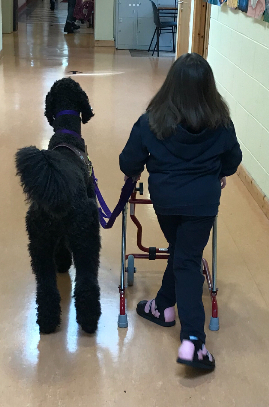 Mozart first arrived in Carrigallen Vocational School as Grace started TY. Initially there was much excitement amongst students and staff alike. Teachers explained to the students that while Mozart was wearing his harness he was working, and should not be distracted by students trying to pet or speak to him.