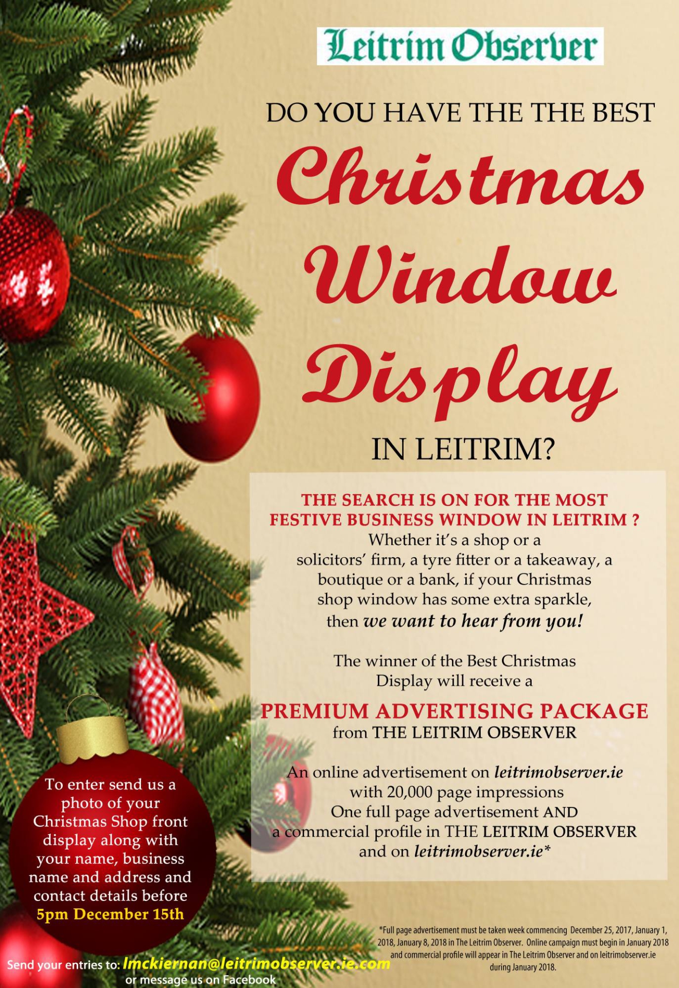 The Leitrim Observer is running a Christmas Window Display competition and were are looking for the best and brightest festive displays from businesses across the county.