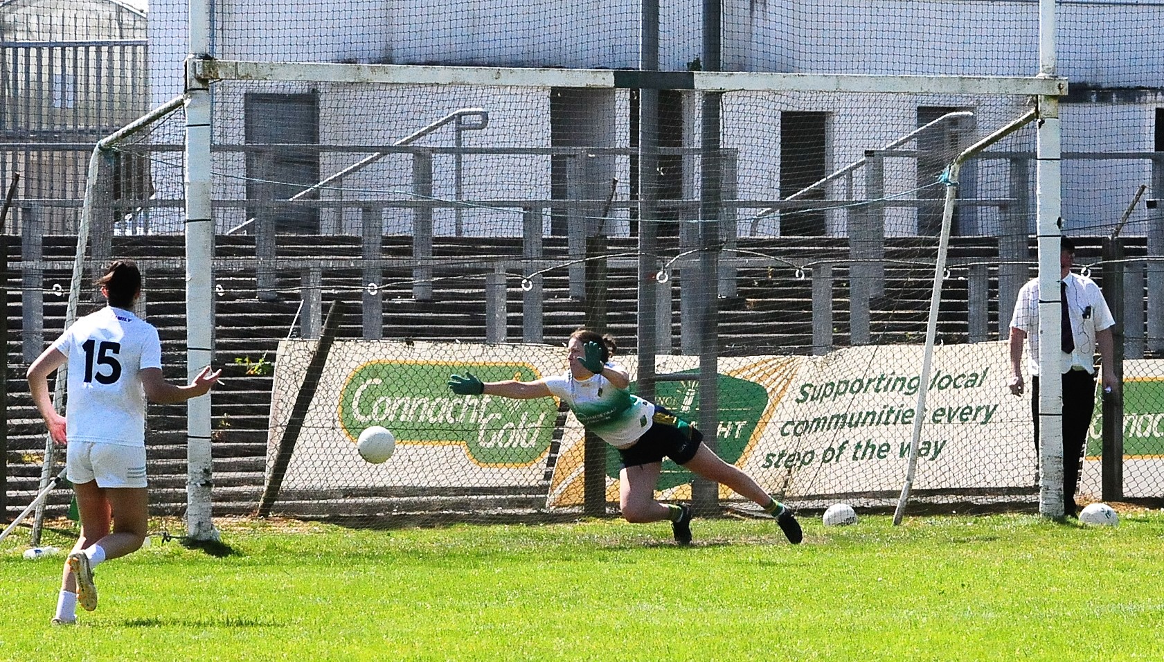 Kildare's Neasa Dooley watches as her palmed effort flies into the Leitrim net Picture: Willie Donnellan