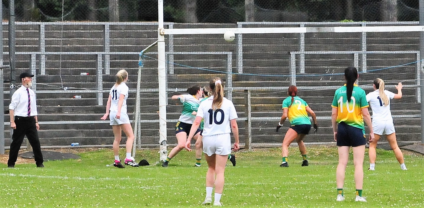 The Green & Gold got themselves right back in the game when Vivienne Egan burst in along the endline and, under pressure, cracked a powerful shot off the underside of the crossbar with the ball flying into the corner of the net despite Kildare protests, with a fair bit of cause, that the Annaduff woman had over carried the ball.