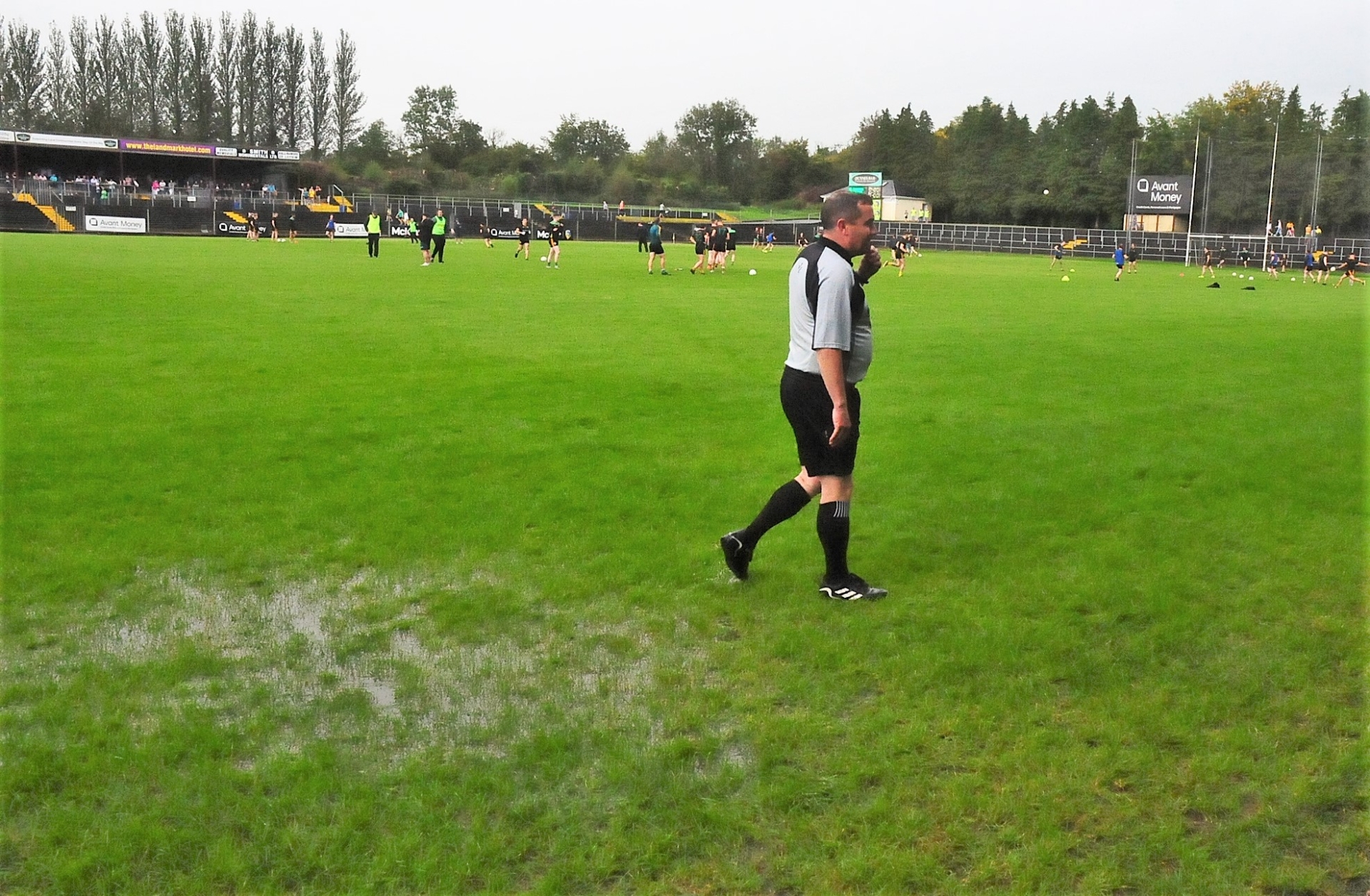 The rain, which started during the concluding stages of Fenagh St Caillins 1-22 to 2-3 demolition of Leitrim Gaels, grew much heavier during the break between both quarter-finals and despite both teams attempting to warm-up, undertaking some intensive drills that left the pitch heavily marked, it soon became obvious that the match could not go ahead.
