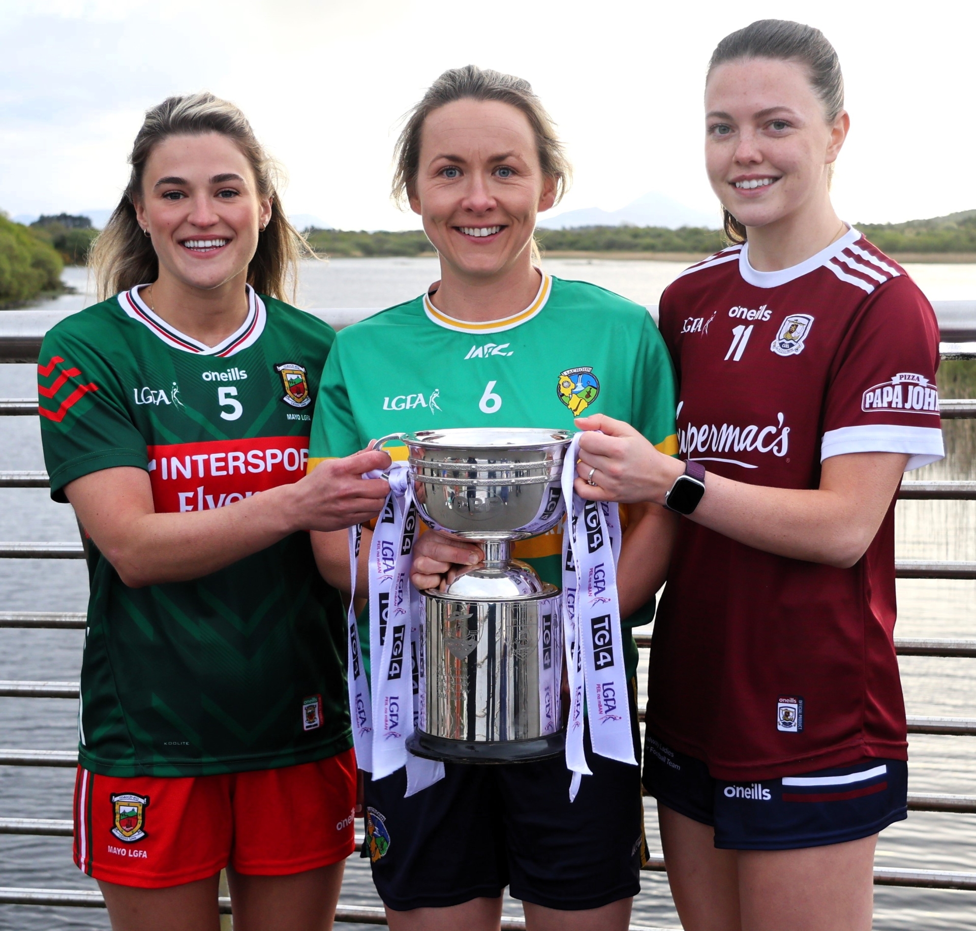 Claire Owens pictured with Mayo's Danielle Caldwell and Galway's Eva Noone at the launch of the TG4 Connacht LGFA Championships