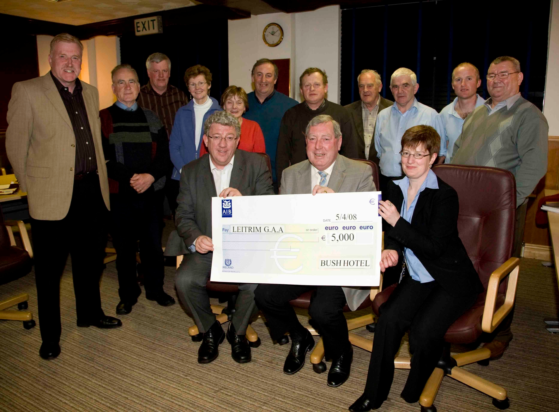 Gerry McGovern (back row, far left) pictured with fellow Leitrim Supporters Club members at the presentation of a prize from the Bush Hotel