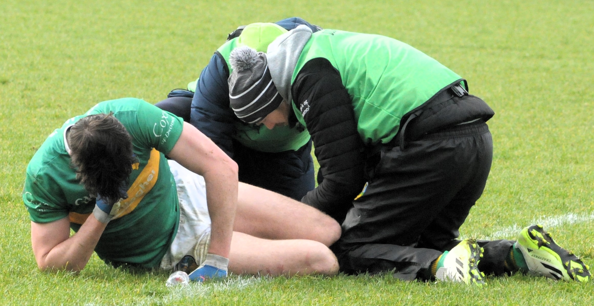 Barry McNulty receives treatment for an ankle injury Picture: Willie Donnellan