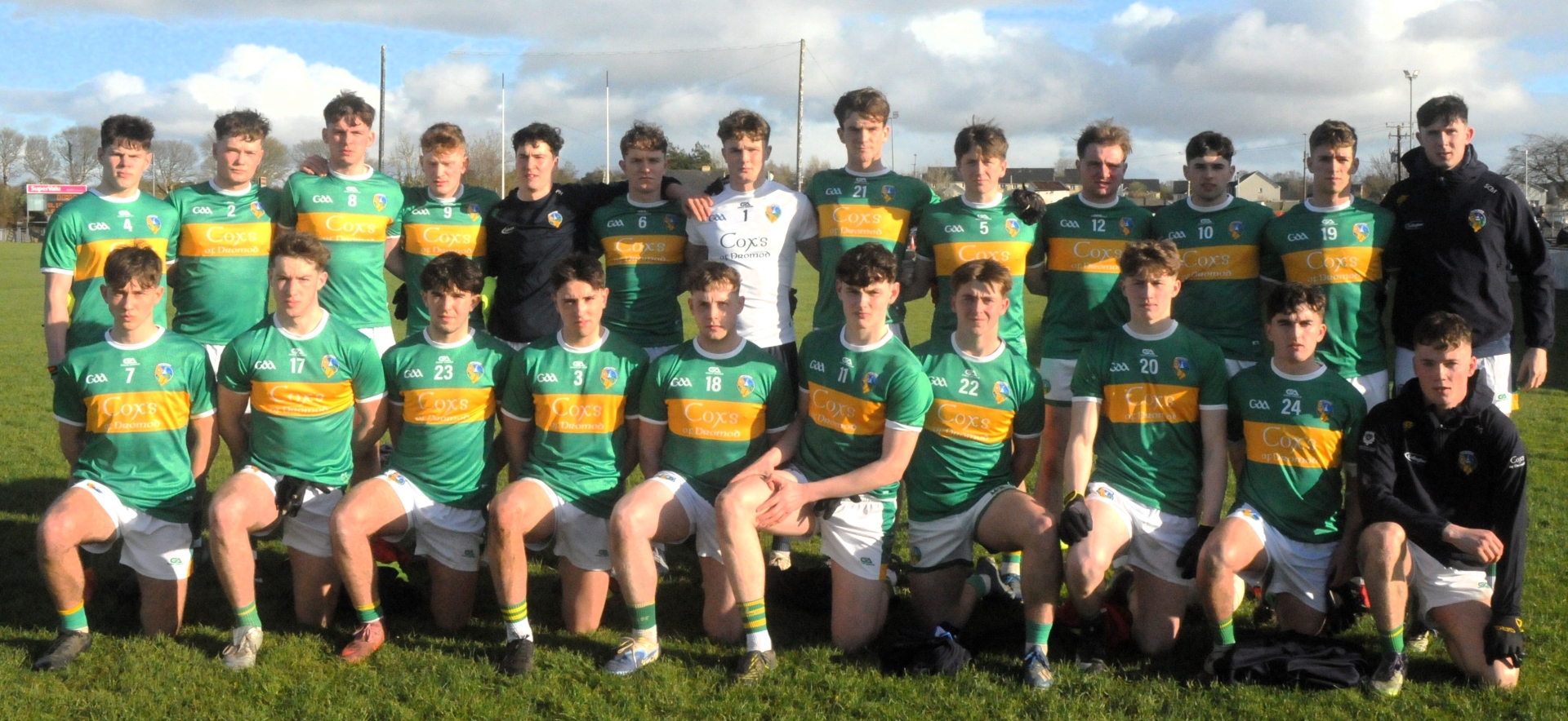 Team: Gareth Cummins, Josh McHugh, Patrick Brady, Alex Little, Eamon Keane, James Lavin, Oran Harte, Conor Walsh, Cian Nicholson, Eamon O’Mahony, Michael Carroll, Cathal Gilligan, Adam Feeney, Aaron Lang, Oisin Devlin. Subs: Matthew Walsh for Lang (41); Paul Flynn for Devlin (44); Jim Molloy for Gilligan (48)