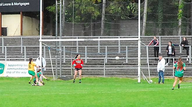 Niamh Donohue's late free should have, to this observer and a few others it has to be said, been a spot kick after a Ballinamore player was fouled in the large area. The player landed outside the area with referee Cyril McKeon awarding a free following the clash.