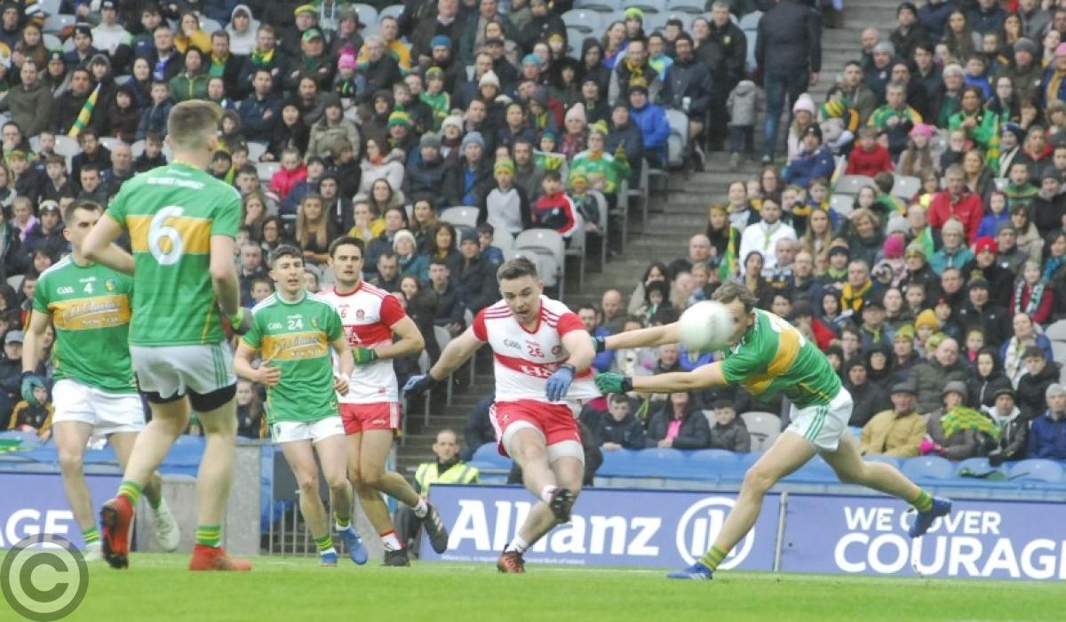 The Ulster side led by six points midway through the second period with Shane McGuigan leading the way in attack and despite Leitrim scoring five points in the last 15 minutes with a stirring rearguard action, Derry held out for the victory.