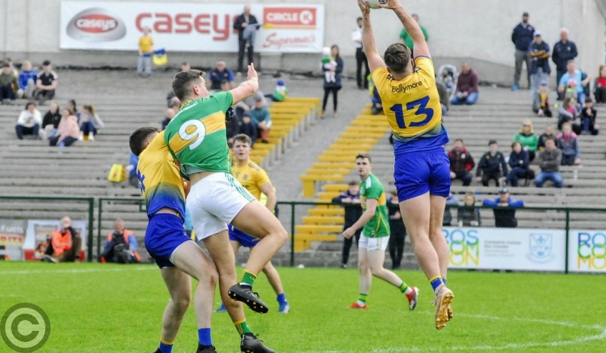 A strong Ryan O’Rourke run saw him find Ray Mulvey through on goal but the St Mary’s man close range shot was tipped over the bar by O’Malley on 26 minutes but from the kickout, Roscommon strode right down the middle of the field and Conor Cox fisted the ball over the bar.