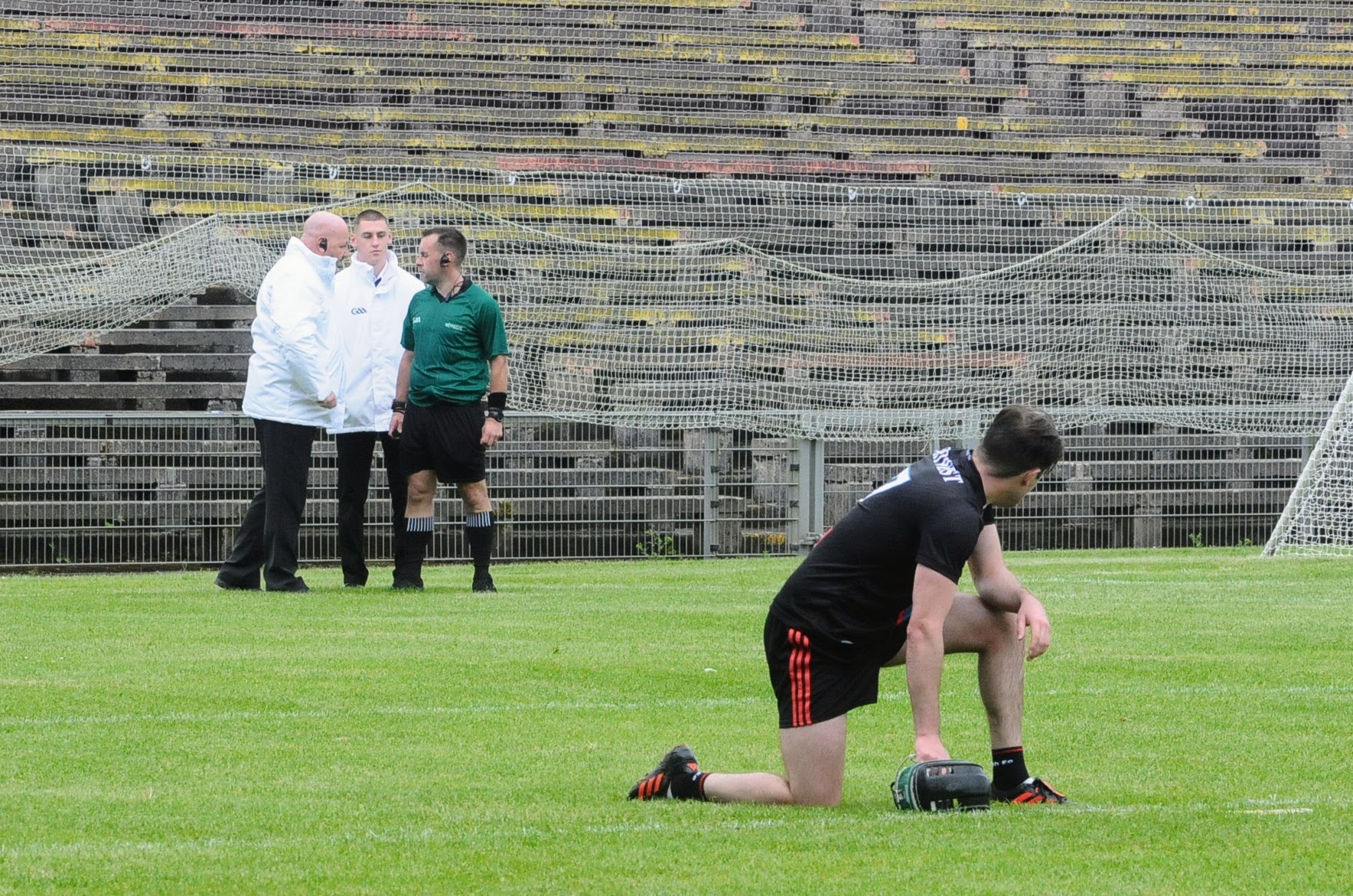 First, with Mayo lead by 15 points at the time, we had Colm Moreton sent to the line for the crime of pushing a Mayo player in the chest. Now, the Leitrim man was silly to react but having seen his hurl thrown away from him, he foolishly pushed the defender in the chest. The Mayo man fell dramatically to the ground and soon enough a red card followed with the injured player soon up and running about.