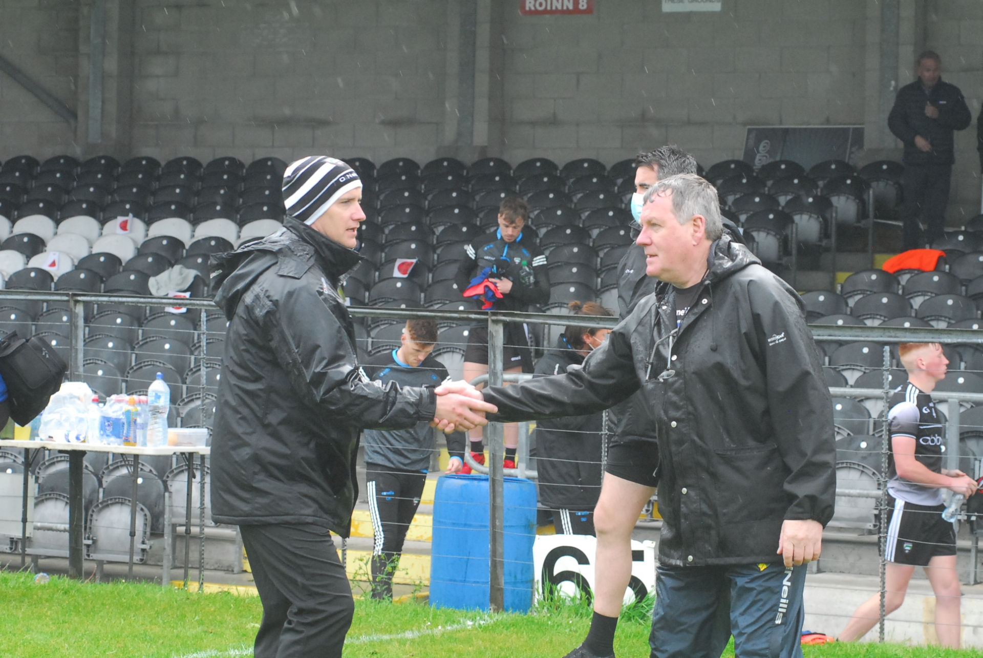 Terry Hyland shakes hands with Sligo manager Tony McEntee following the Allianz NFL Division 4 North clash in Markievicz Park in May Picture: Willie Donnellan