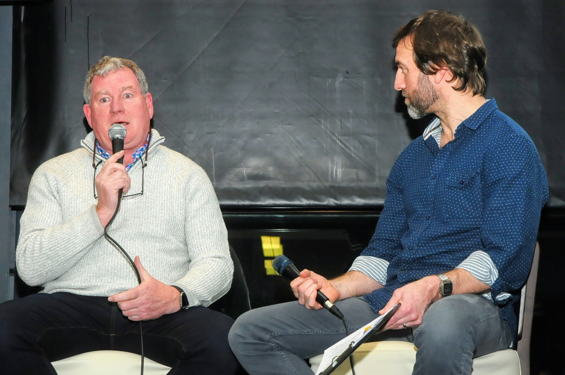 Terry Hyland chats with Colin Regan at the launch of the 2020 Leitrim GAA Supporters Club in Croke Park Picture: Willie Donnellan