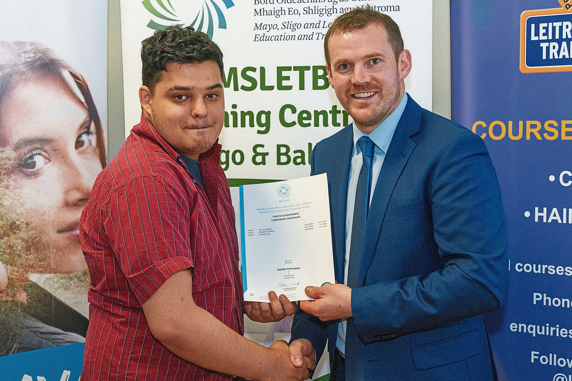 Ondrej Pohlodko, presented with his certificate by James McLoughlin, MSLETB