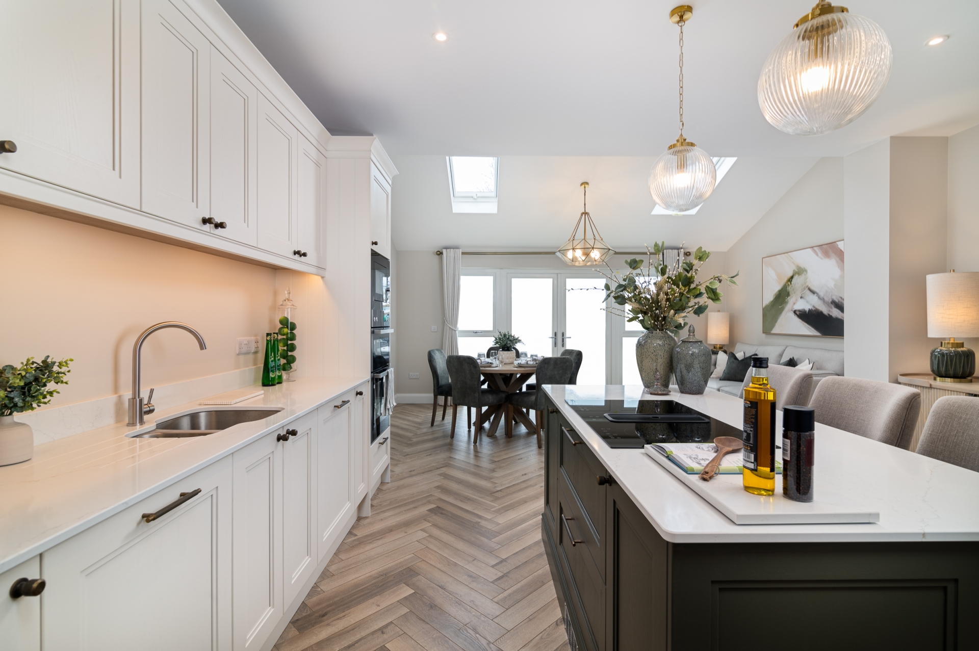 Kitchens: Superior quality bespoke kitchens. The design is classic yet contemporary, featuring quartz worktops as standard. Fitted utility rooms are featured in all 3, 4 & 5 bedroom homes.