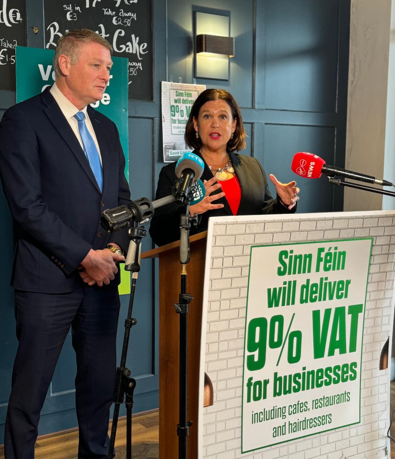 She pledged that a Sinn Féin-led government would act swiftly to reduce the VAT rate. “To save local jobs, a Sinn Féin-led government will introduce a reduced 9% VAT rate for the hospitality sector. We will implement this within the first 100 days of government,” McDonald stated, adding that the measure is fully costed and a necessary intervention.