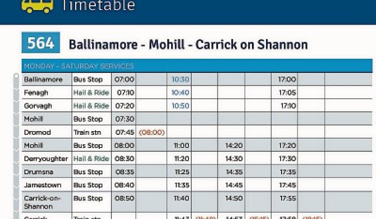 A spokesperson for Local Link said “Working with the NTA we have developed the timetable with a view to linking Local Link services with Bus Éireann services to Sligo and Longford and with Irish Rail at Dromod and Carrick-on-Shannon to Dublin and Sligo. This will enable passengers to make onward connections while also increasing visitor access to the area. We are confident that the service will attract sufficient passengers to ensure the continuation of the service long into the future. A detailed timetable is published in the advertising section of this edition.