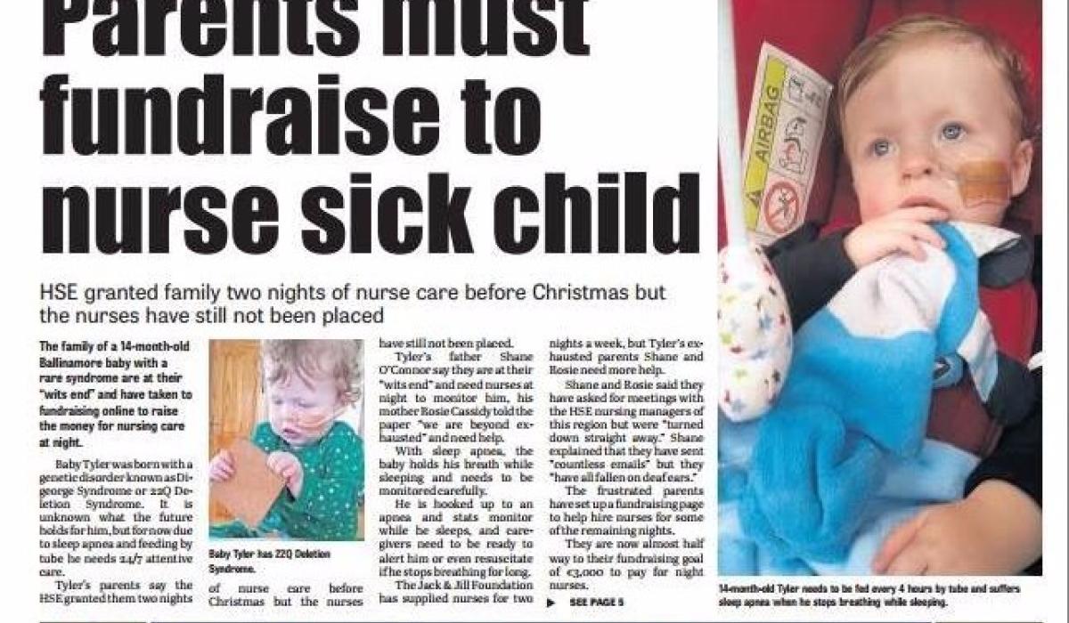 Tyler's parents say the HSE granted them two nights of nurse care before Christmas but the nurses have still not been placed.