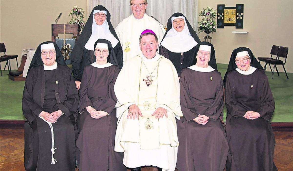 Sisters of the Poor Clare Order in Drumshanbo are pictured in the Convent Chapel with Bishop Francis Duffy, Bishop of Ardagh and Clonmacnoise following the Solemn Profession of Sr. Clare (2nd left, front row).