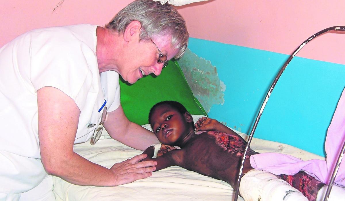 The late Anita McTernan treating a burn victim at the Sisters of Mercy Mission Hospital in Kenya
