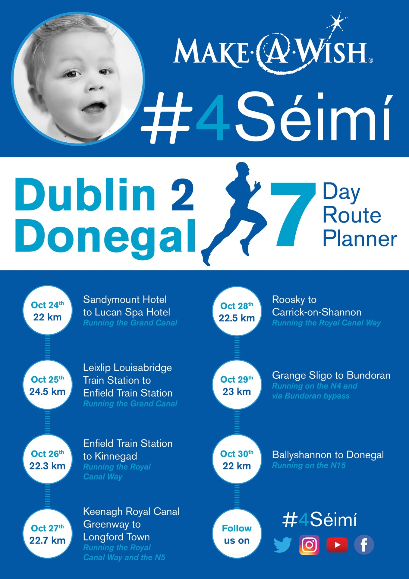 All monies raised by the challenge will be donated to Make-A-Wish Ireland in the name Séimí Brennan and all wishes granted with this will be in little Séimí’s name.