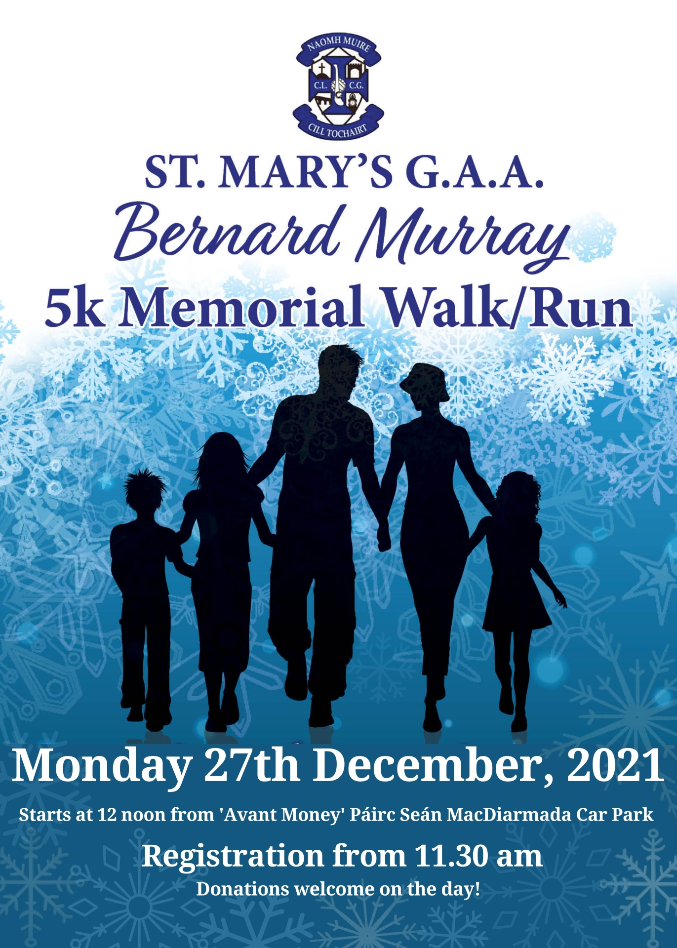 The St Mary's GAA Bernard Murray Memorial Walk will take place this year on Monday, December 27th, meeting at 11.30 pm.
