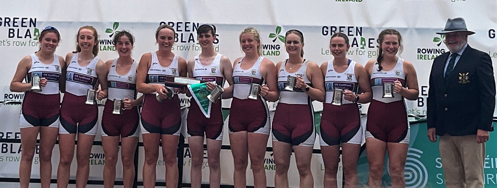 The NUI Galway team, featuring former Carrick Rowing club members Gwen O'Rourke and Shauna Murtagh (second and third from right) who won the Senior Ladies 8s at the National Rowing Championships last Sunday in Cork