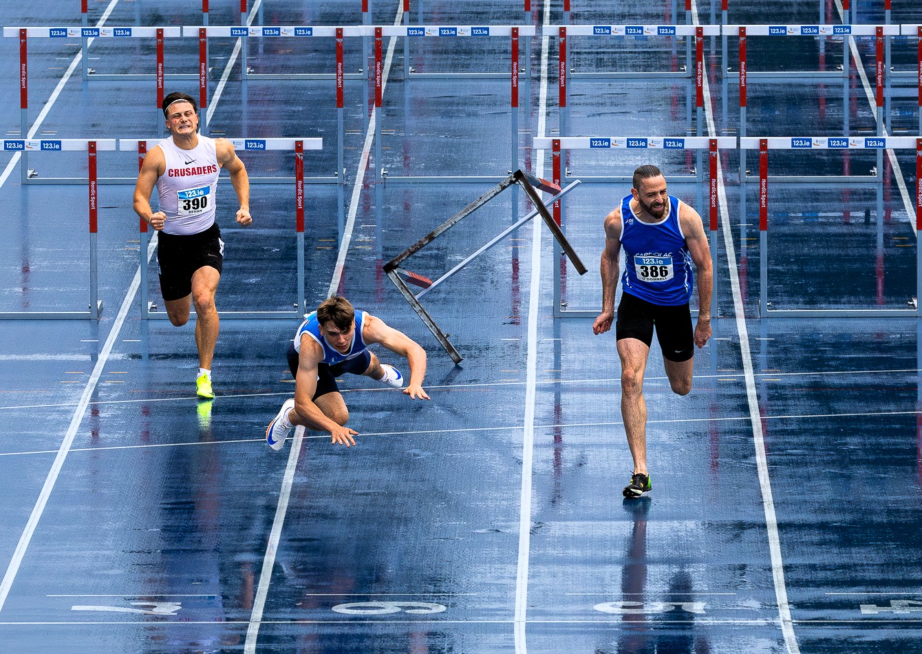 Carrick AC's Gerard O'Donnell wins a dramatic 110m Hurdles Final at the Athletics Ireland National Senior Championships last June Picture: Mark Kavanagh Photography