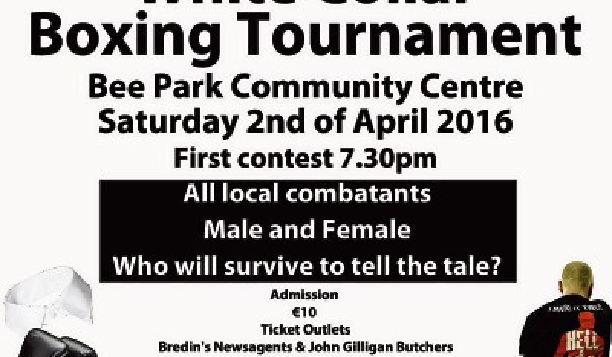 Glencar Manorhamilton GAA Club, in association with the Sean McDermott Boxing Club, host a White Collar Boxing Tournament in the Bee Park Community Centre on Saturday April 2, at 7.30.