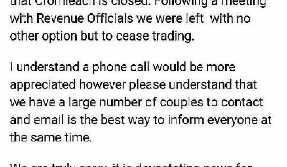 The first that many couples heard about the closure was via an email sent to them on Thursday, March 10 informing them that the decision had been made to close following a meeting with Revenue officials.