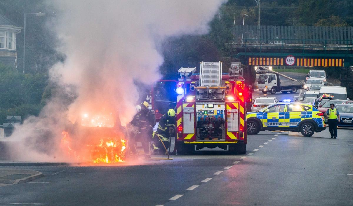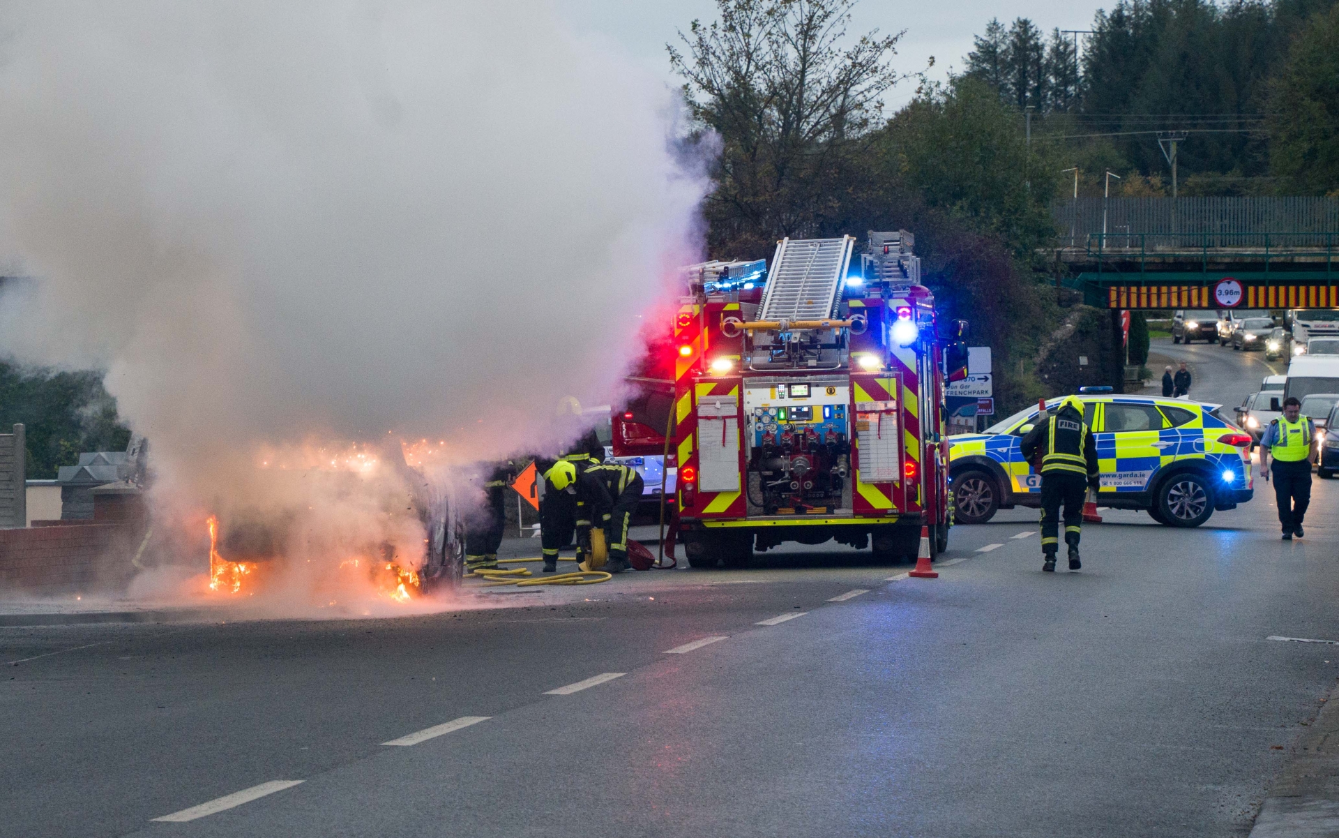 Members of the fire service are attending the scene of a car fire on the Elphin Road, outside Carrick-on-Shannon.