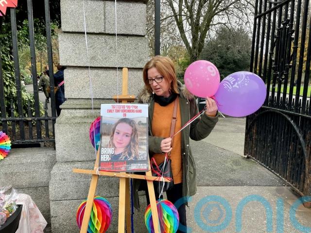 A birthday cake and balloons with Emily’s name were unveiled, as well as a poster saying “Bring her home now”.