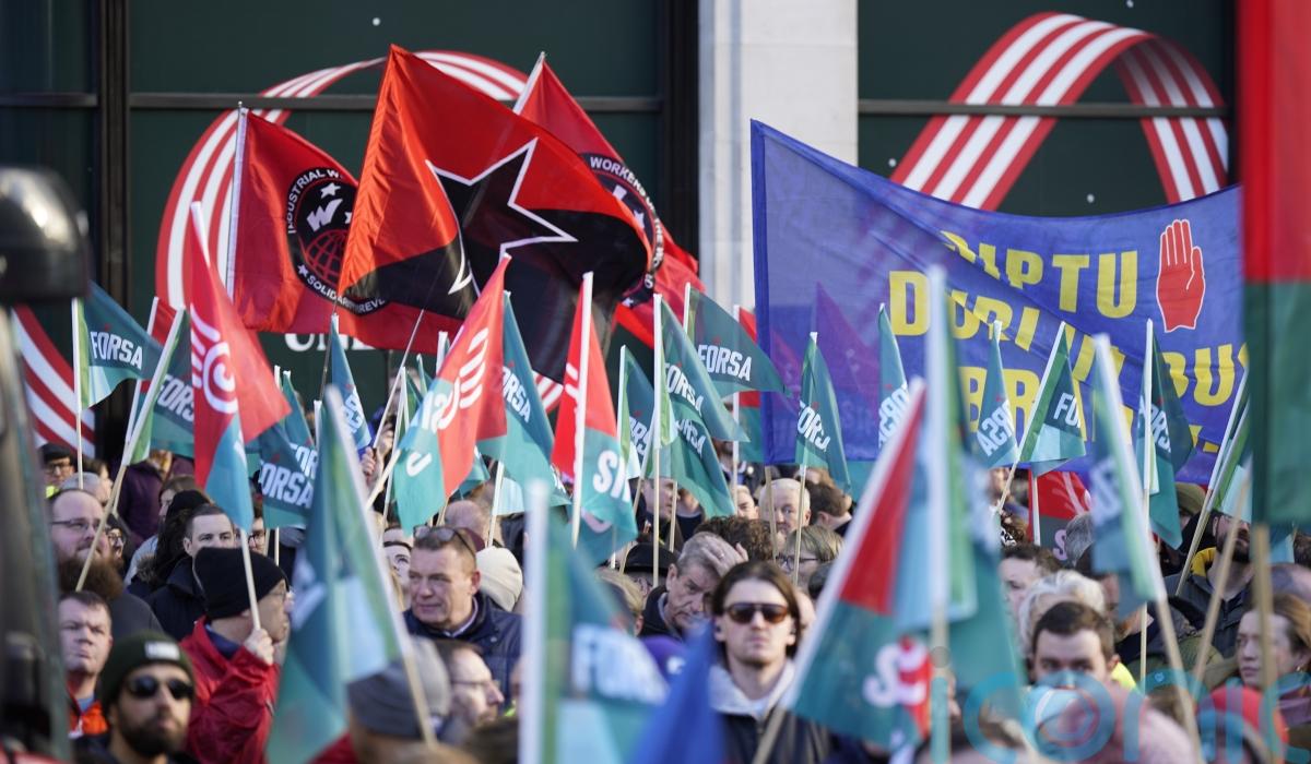The Irish Congress of Trade Unions’ (ICTU) rally was held at 1pm in O’Connell Street in protest against the riotous behaviour, and solidarity with those affected by violence in the city on Thursday, including three children and a care worker who were stabbed in a preceding knife attack.