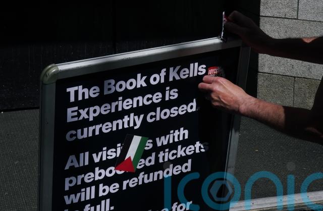 Visitors have been unable to access the historic Book of Kells since the action began on Friday evening when the activists set up tents inside the campus of the prestigious Dublin university.