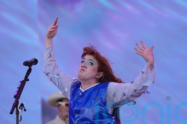 Irish singer CMAT chanted “Free Palestine” and waded into the Pyramid Stage crowd, who were dancing in the midday heat, during her Glastonbury Festival set.