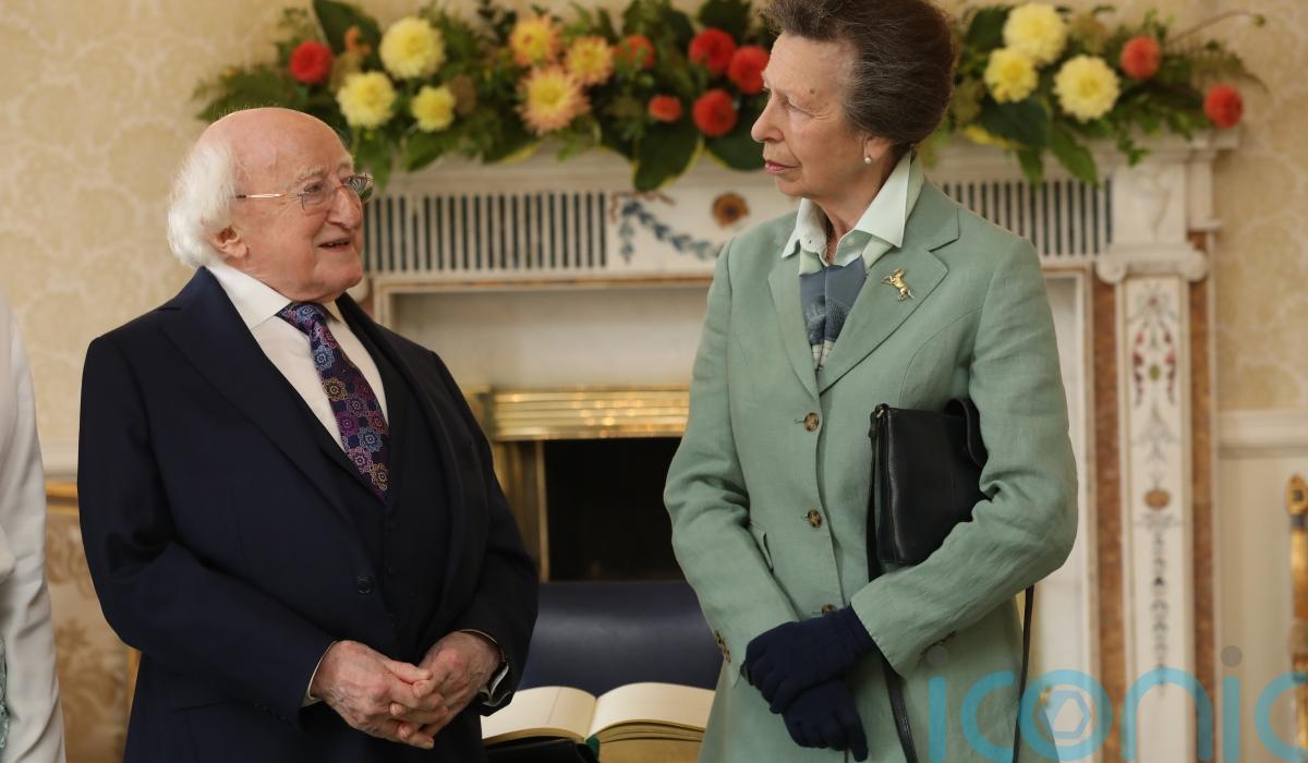 Irish president Michael D Higgins has welcomed the Princess Royal to his official residence in Dublin.