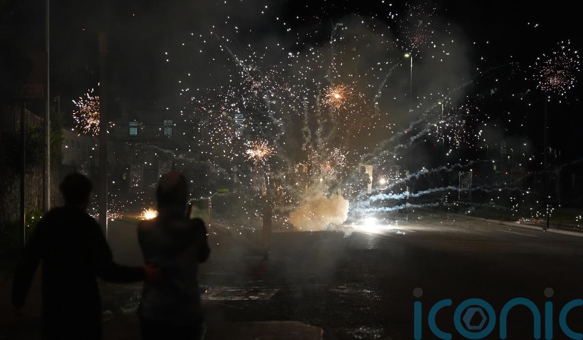 Twenty-three people were arrested following an hours-long standoff with Irish police, whose members were directly struck with fireworks, stones and other debris.