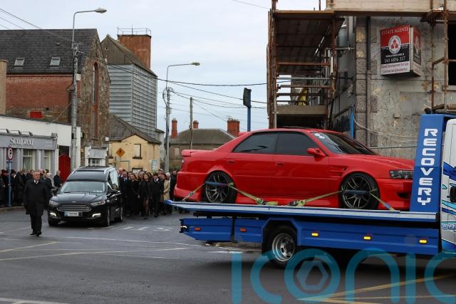 The hearse arrived at the Church of the Nativity of Our Lady in Ardee along with a bright red Toyota Chaser on the back of a recovery truck.