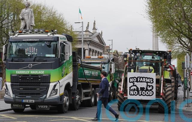 Around two dozen protesters stood on O’Connell Bridge on Wednesday morning as a handful of tractors remained parked on O’Connell Street overnight.
