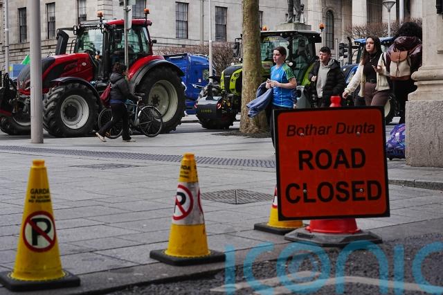 Around two dozen protesters stood on O’Connell Bridge on Wednesday morning as a handful of tractors remained parked on O’Connell Street overnight.