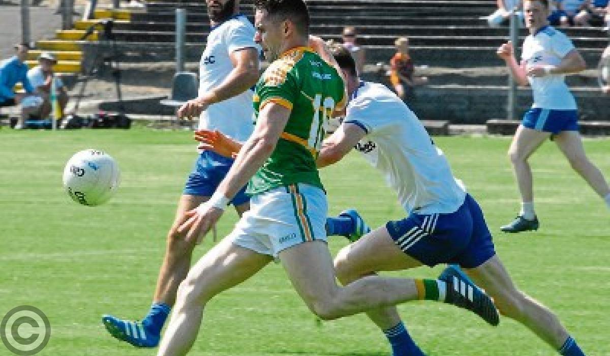 Seven points to one before halftime suddenly left Leitrim with a mountain to climb against a Monaghan team who adopted different tactics in the searing heat last Saturday as they let the ball do all the work and watched as Leitrim’s intense workrate gradually slowed and faded.
