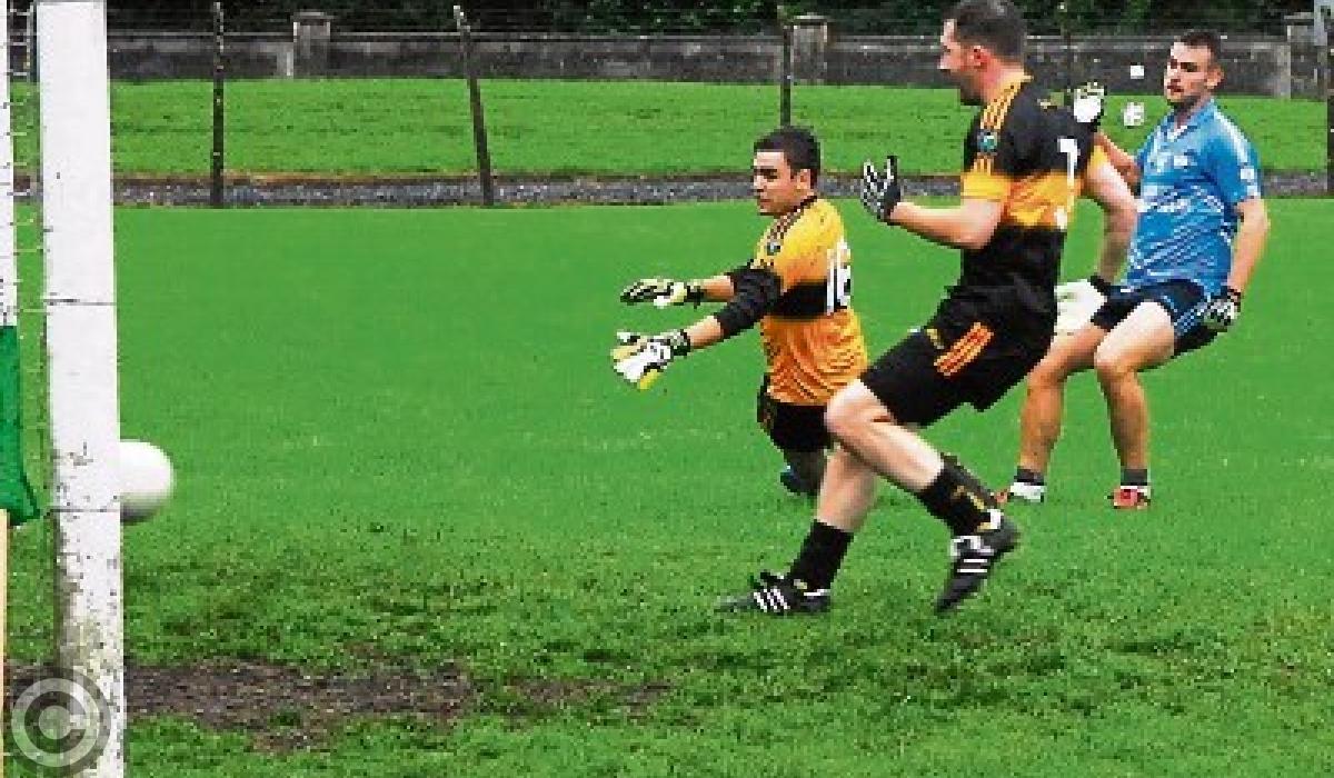 Martin Beirne drives the ball to the net for Allen Gaels second goal against Bornacoola. Photo by Willie Donnellan