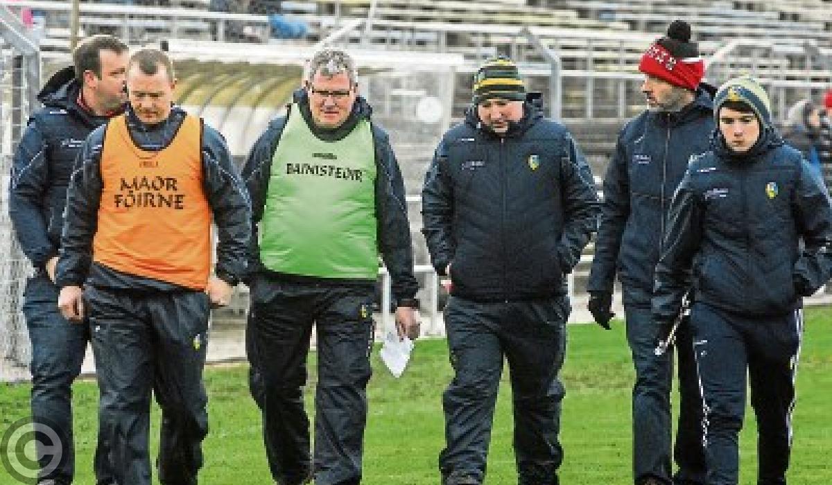 Terry Hyland pictured with his backroom team at half time last Sunday picture: Willie Donnellan